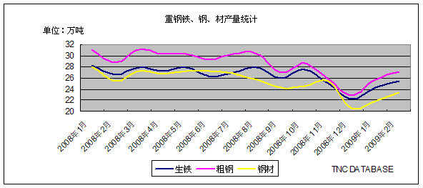 重鋼集團鐵、鋼、材產(chǎn)量統(tǒng)計(2009.02)