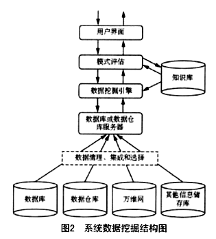 數(shù)據(jù)分析管理模塊是以企業(yè)所有的數(shù)據(jù)源的集合作為分析的基礎(chǔ),本系統(tǒng)采用數(shù)據(jù)挖掘的思想對(duì)整合的企業(yè)業(yè)務(wù)數(shù)據(jù)信息,進(jìn)行統(tǒng)計(jì)分析。系統(tǒng)數(shù)據(jù)挖掘結(jié)構(gòu)如圖2所示。